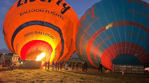 - Breakfast: Gourmet buffet breakfast at Holiday Inn, with a glass of sparkling for all Liberty Balloon Flights passengers